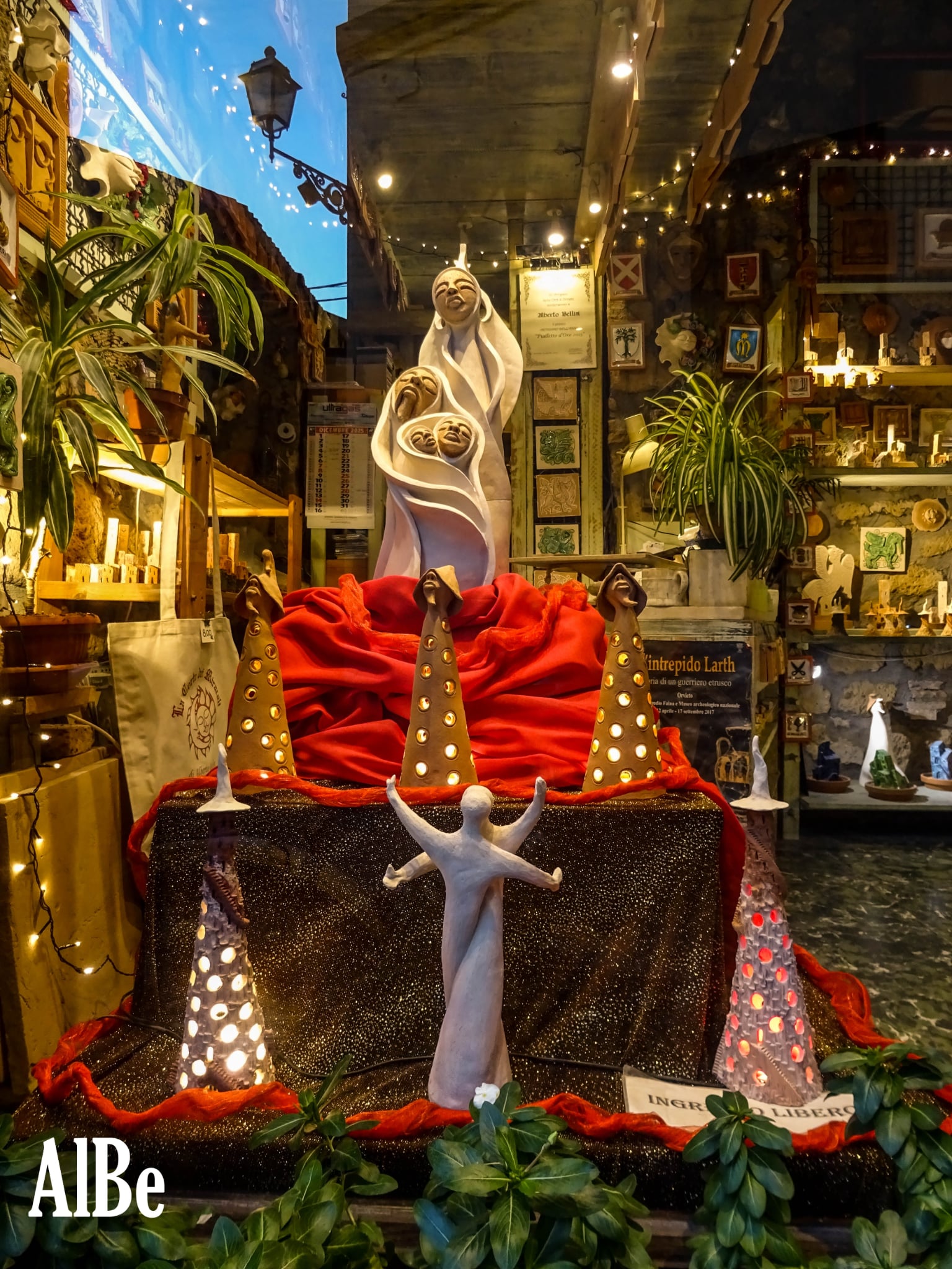 Più che una bottega artigiana ” La corte dei miracoli ” è una magia dove le sapienti mani di Alberto Bellini creano oggetti che sembrano incantati e precipitano il turista nella dimensione della favola. È un’ esperienza davvero unica.i suoi gnomi, castelli, ballerine, targhe che si ispirano alla cultura orvietana. L’opera che più colpisce per armonia e simbologia è l’abbraccio. Una piccola bottega che ci porta come per magia in una dimensione fantastica e onirica.