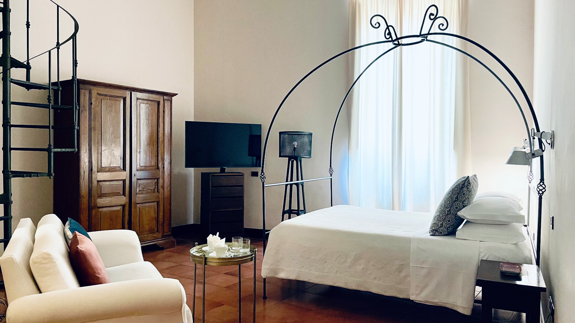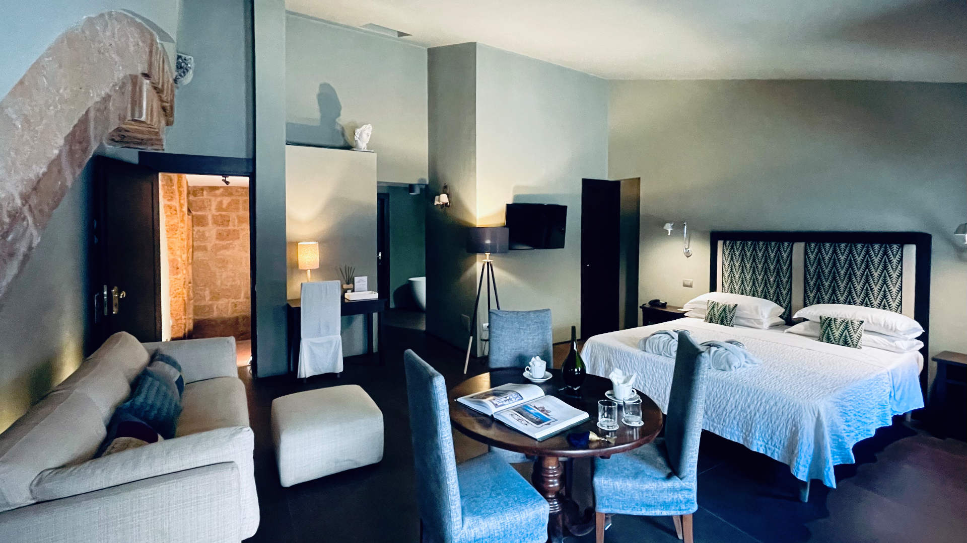 Ogni camera, dalle accoglienti standard alle sontuose suite, unisce fascino antico e comfort moderno. Qui ogni dettaglio, dalle pietre tufacee ai soffitti a volta, parla di arte e di bellezza.