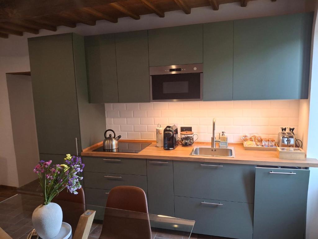 Le stanze e la suite, possono usufruire della cucina in comune per tutti gli ospiti, completa di macchina del caffè con cialde, bollitore, fornelli a induzione, microonde, frigo, tè, tisane, succhi.